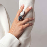 The Cherub With Anfora Ring features a beautiful drop-shaped Couture cameo crafted from porcelain, depicting a charming cherub holding an anfora, surrounded by sparkling stones. Part of the Tesoro Collection, it combines the beauty of antique design with a contemporary form, creating a timeless jewel. Perfect for formal occasions or adding a statement to your everyday style, this ring embodies timeless beauty and refined craftsmanship as part of the Tesoro Collection.