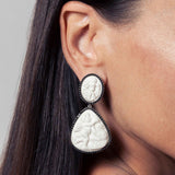 From the Tesoro collection, these wide teardrop drop earrings are a refined and radiant piece of jewelry. Featuring two porcelain cameos in elegant white tones, adorned with sparkling black stones, these earrings are designed to stand out and enhance any look with timeless sophistication.