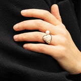 The Medusa Ring is a delicate open design featuring a porcelain cameo of Medusa paired with a freshwater pearl. Part of the Medusa Collection, it captures the myth’s rich narrative and artistic beauty, offering a refined accessory for lovers of sophistication.
