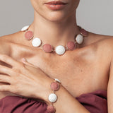 Crafted in alternating terracotta and white, the cameos of the Rosette Necklace reflect the signature palette of the Barocco Collection. This collection celebrates the exuberance of the 17th century, highlighting exaggerated details that pay homage to the grandeur of Baroque design.