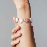 This refined and elegant bracelet features porcelain cameos depicting a woman adorned with a fruit ornament on her head. Part of the Baroque collection, it showcases two dominant colors: terracotta and white. The bracelet celebrates the beauty and opulence of the Baroque era, combining timeless sophistication with intricate artistry.